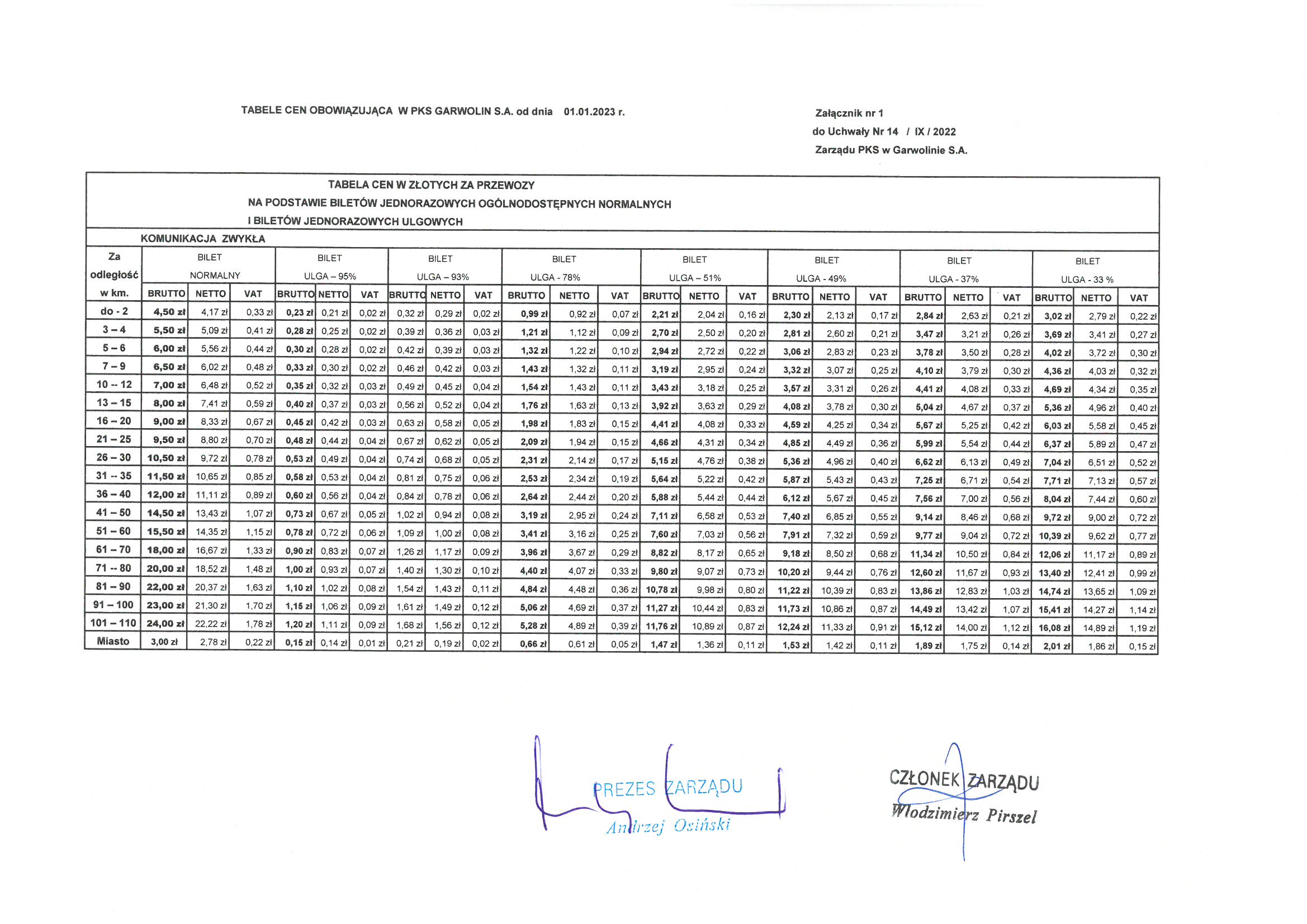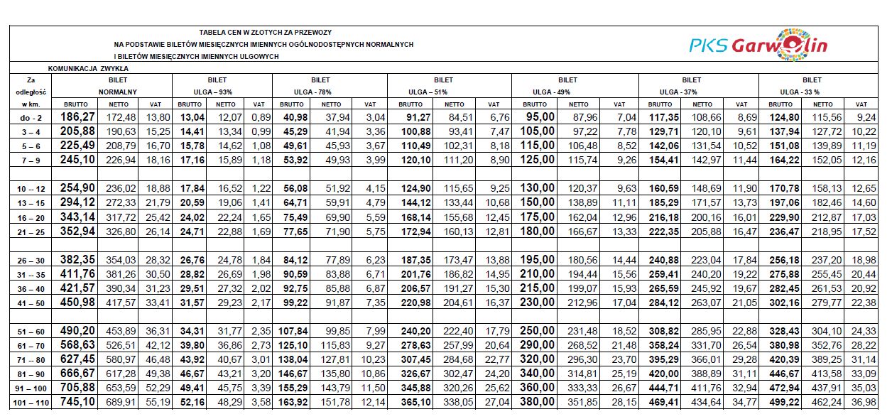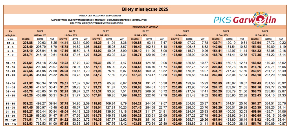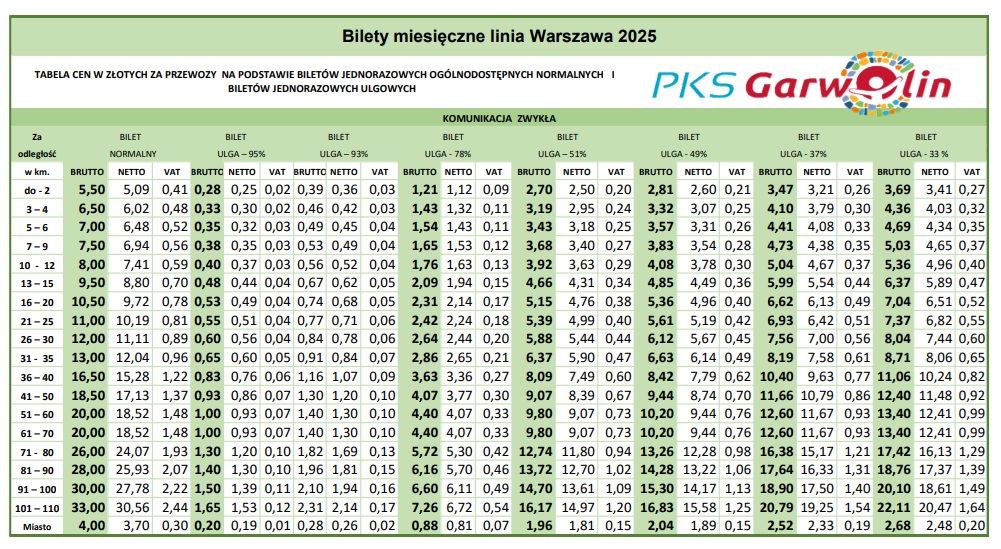 Cennik linia Warszawa 2025 pobierz